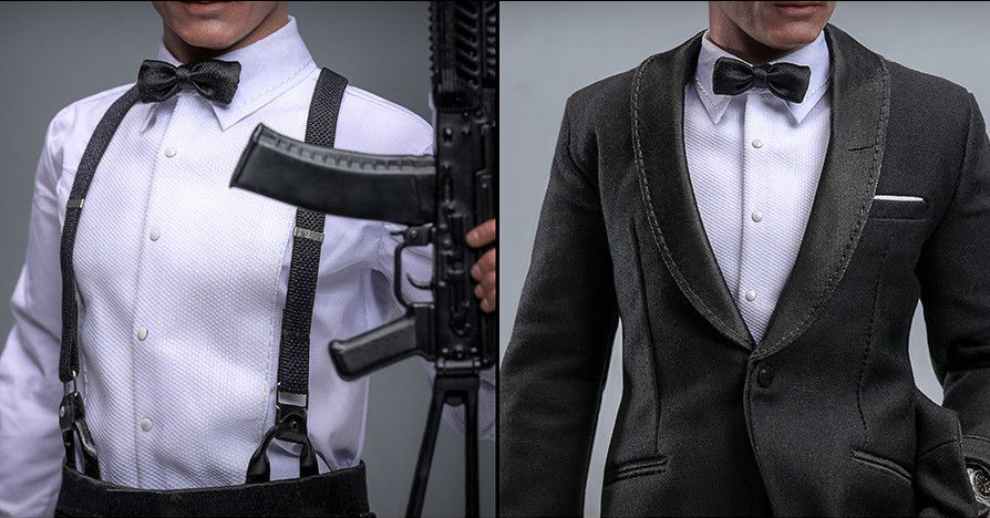 The fabric costume is finely tailored to showcase James Bond’s classic gentleman appearance.