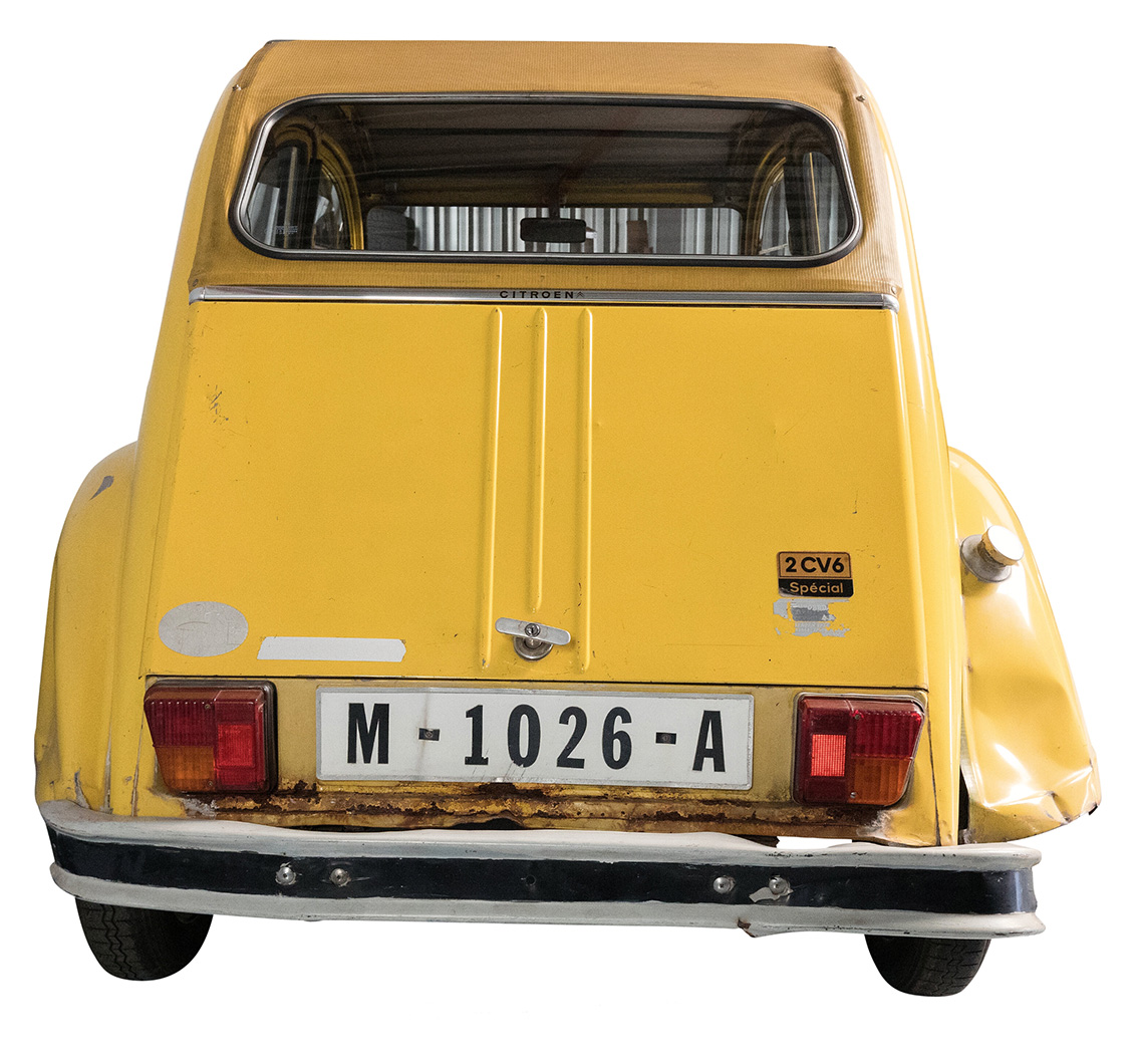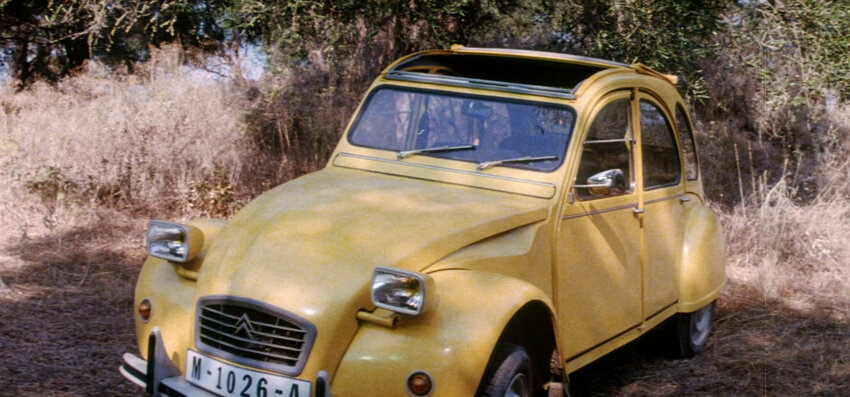 The yellow Citroën 2CV was one of six used for the seven-minute car chase sequence in which James Bond (Roger Moore) and Melina Havelock (Carole Bouquet) escape from Gonzales’s Villa on the outskirts of Madrid, Spain.