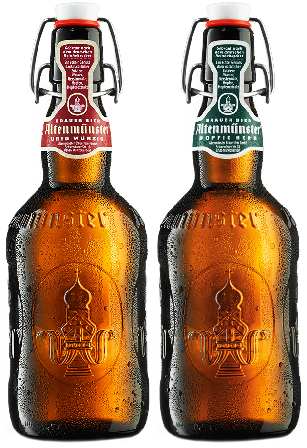 The bottle has a typical design with a large embossed Altenmünster logo and the flip top. Altenmünster was one of the first brands which sold flip-top bottles in Germany. The bottle is still available with this design.