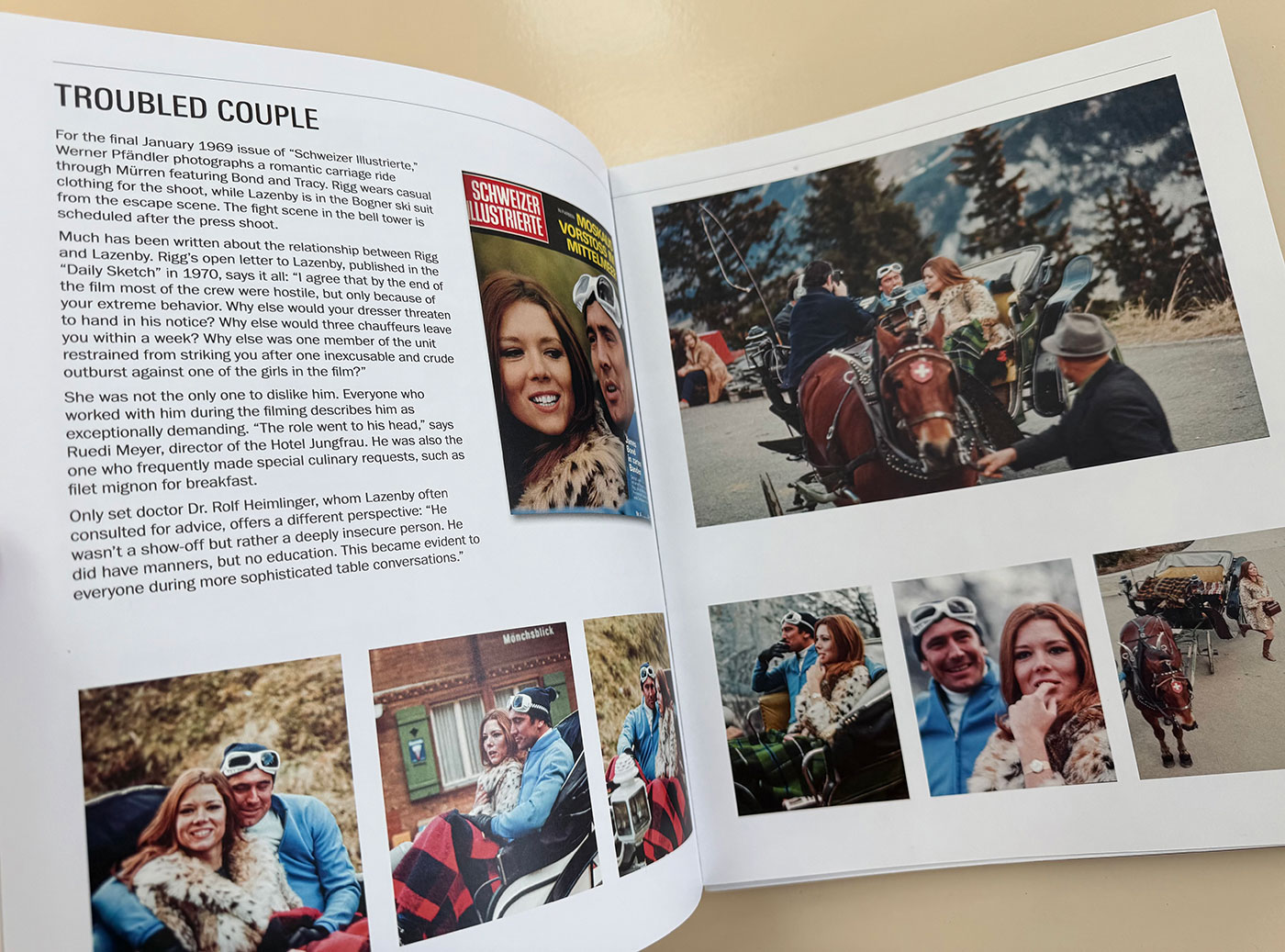 Shot over seven months in Switzerland, the production transformed the Swiss Alps into a sprawling, open-air studio. The Schilthorn summit station in the Bernese Alps was extensively modified and renamed Piz Gloria, Blofeld’s lair. But perhaps the most drastic transformation of the natural landscape occurred when 200,000 cubic meters of ice and snow were blasted from the Tschingelgrat to create the avalanche described in the novel – without official permission.