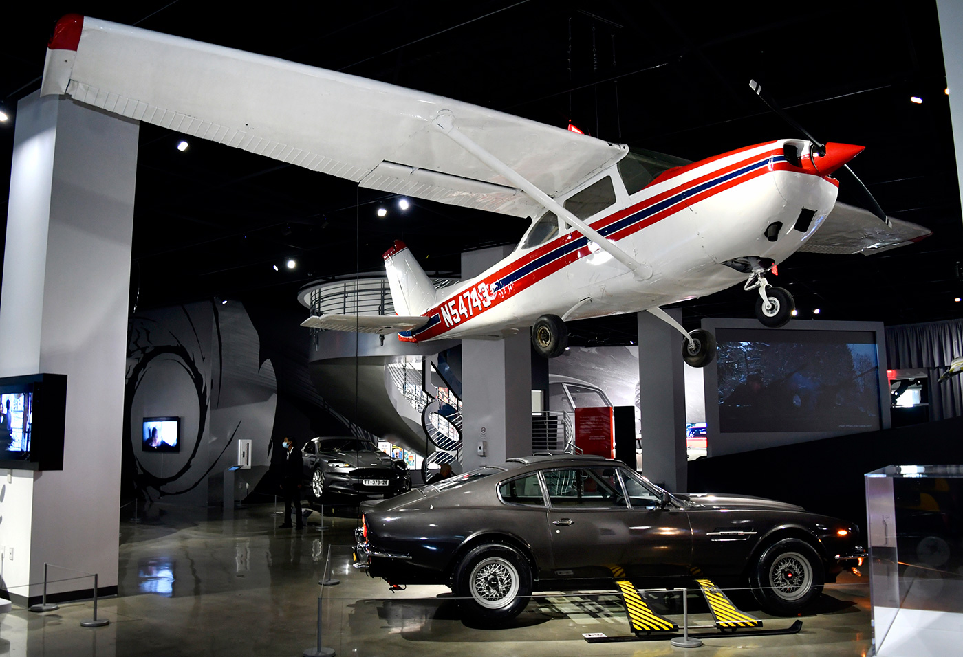 A similar Cessna 172P Skyhawk airplane can also be spotted in the pre-title-sequence of Licence To Kill (1989). In that film, Robert Davi as Franz Sanchez tries to escape in the Cessna, only to be 'caught' by James Bond and Felix Leiter and their Aérospatiale HH-65A Dolphin helicopter. This Cessna is currently owned by the Ian Fleming Foundation and was on display at the Bond In Motion Exhibition at the Petersen Automotive Museum in Los Angeles.
