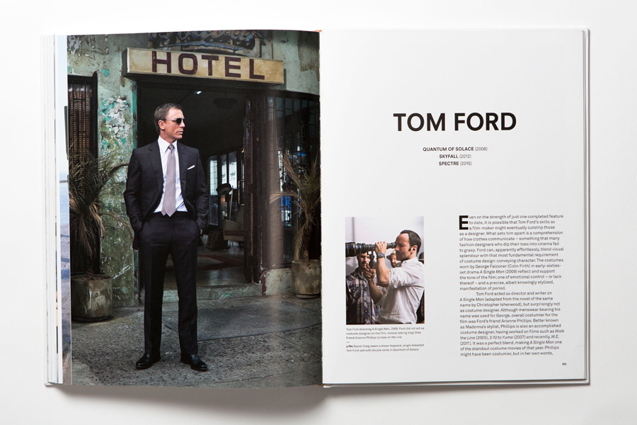 Since Laverty is a Bond fan himself, and style plays a big part in the Bond films, it is no surprise that James Bond costume designers and characters are mentioned throughout the book. Prominent Bond brands include Tom Ford (Bond's clothes in Quantum of Solace, SkyFall and SPECTRE), Versace (Die Another Day and Casino Royale), Prada (Quantum of Solace), Hubert de Givenchy (Moonraker).
