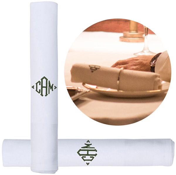 The napkins and other products like gowns, slippers, towels and the laundry bags are available at The Fine Cotton Company. You can select the same initials as in the film (CAM) or other initials of your choice. And make sure to select the colour green if you want the same colour as used in the film.