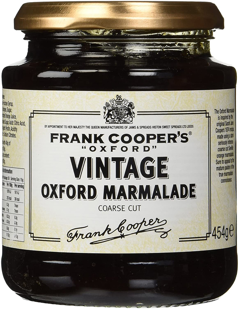 The Oxford Marmalade eaten by Bond and still made today is inspired by the original Sarah Jane Coopers 1874 recipe, made using a dark seriously intense coarse cut Seville orange marmalade.