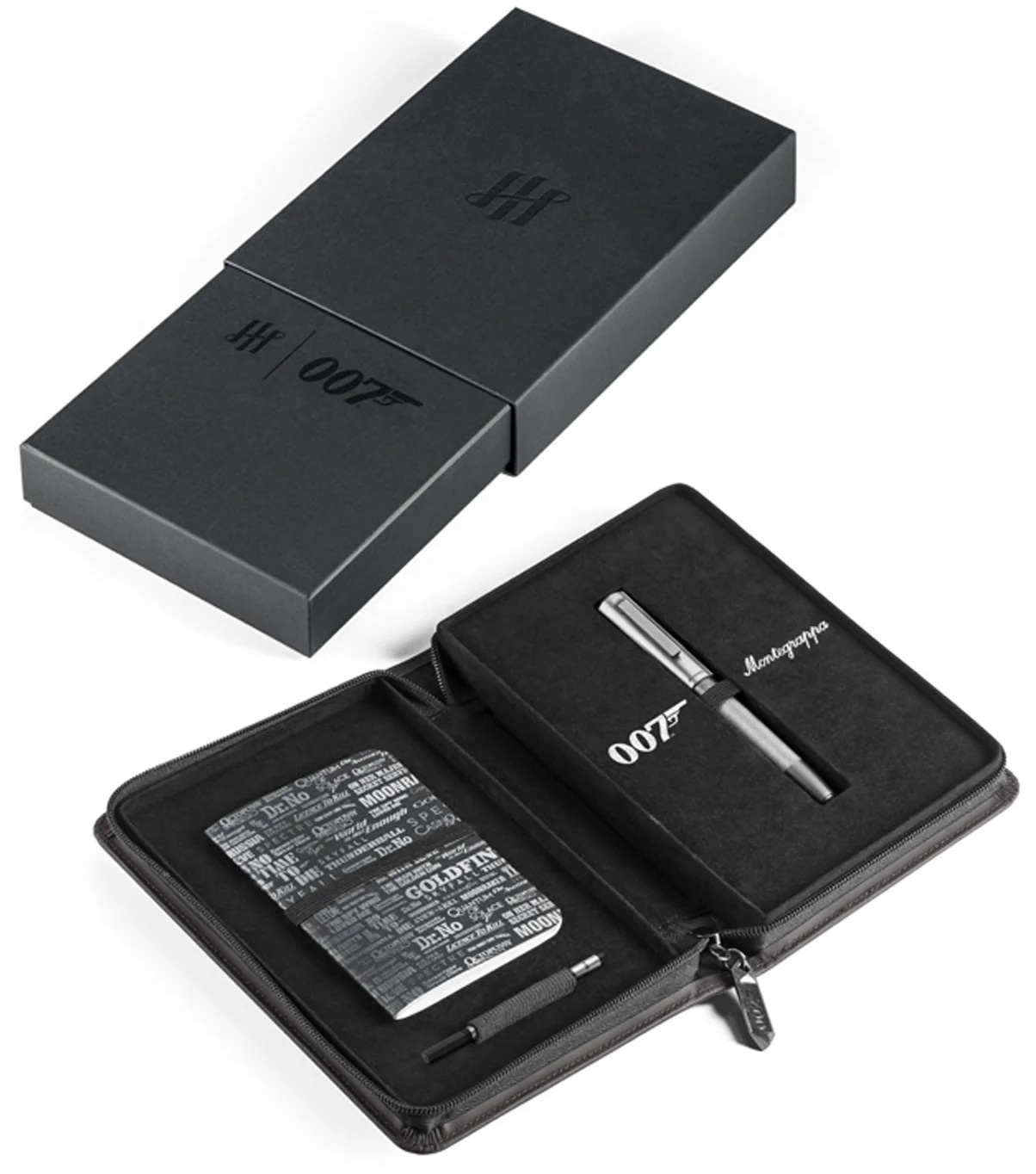 The 007 Special Issue pens come with a companion notebook and 007 zip case.