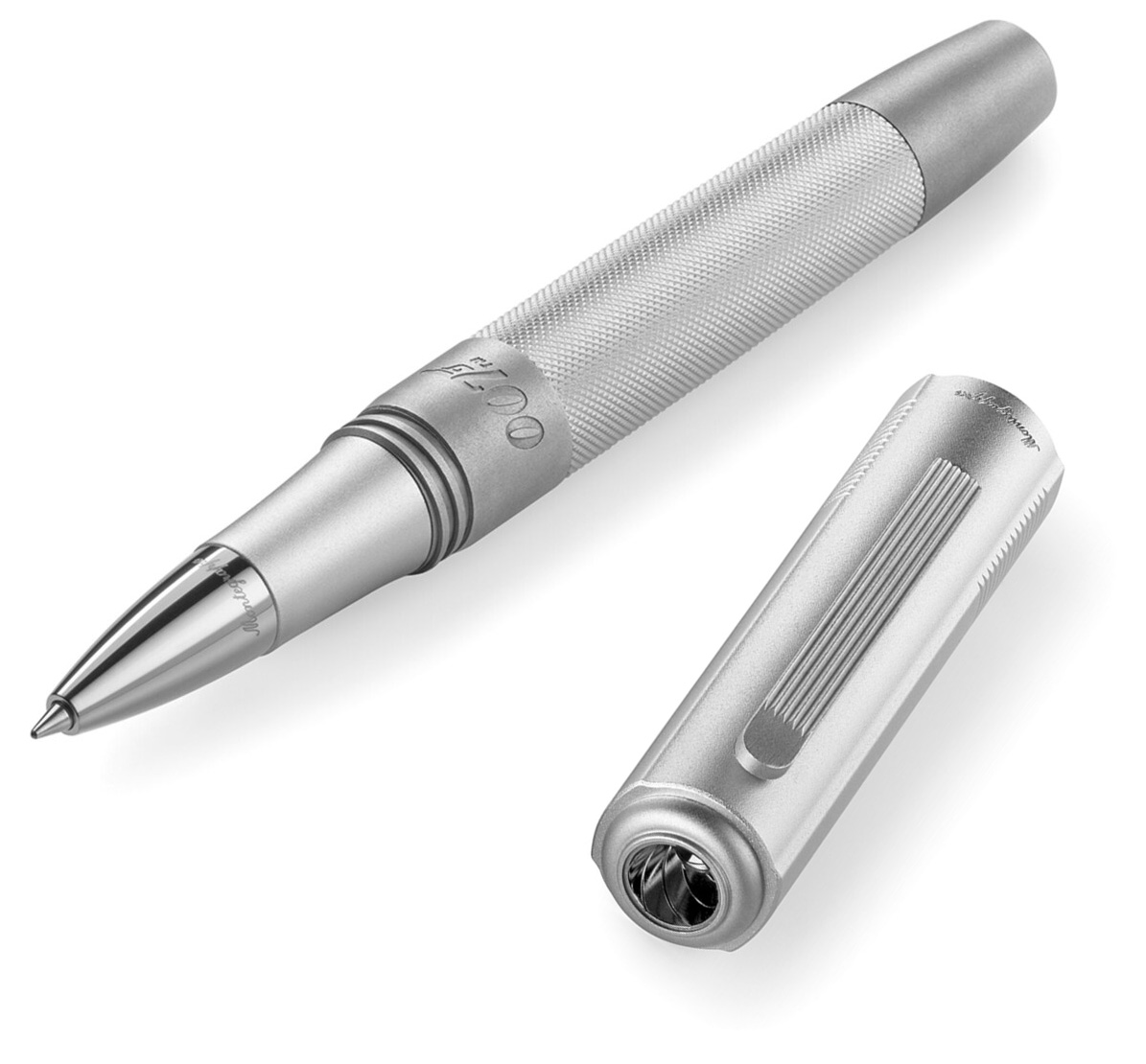 The Montegrappa James Bond 007 Silver Special Issue Fountain Pen and Rollerball feature a sandblasted silver-finish design, machined from aluminium, brass and steel.