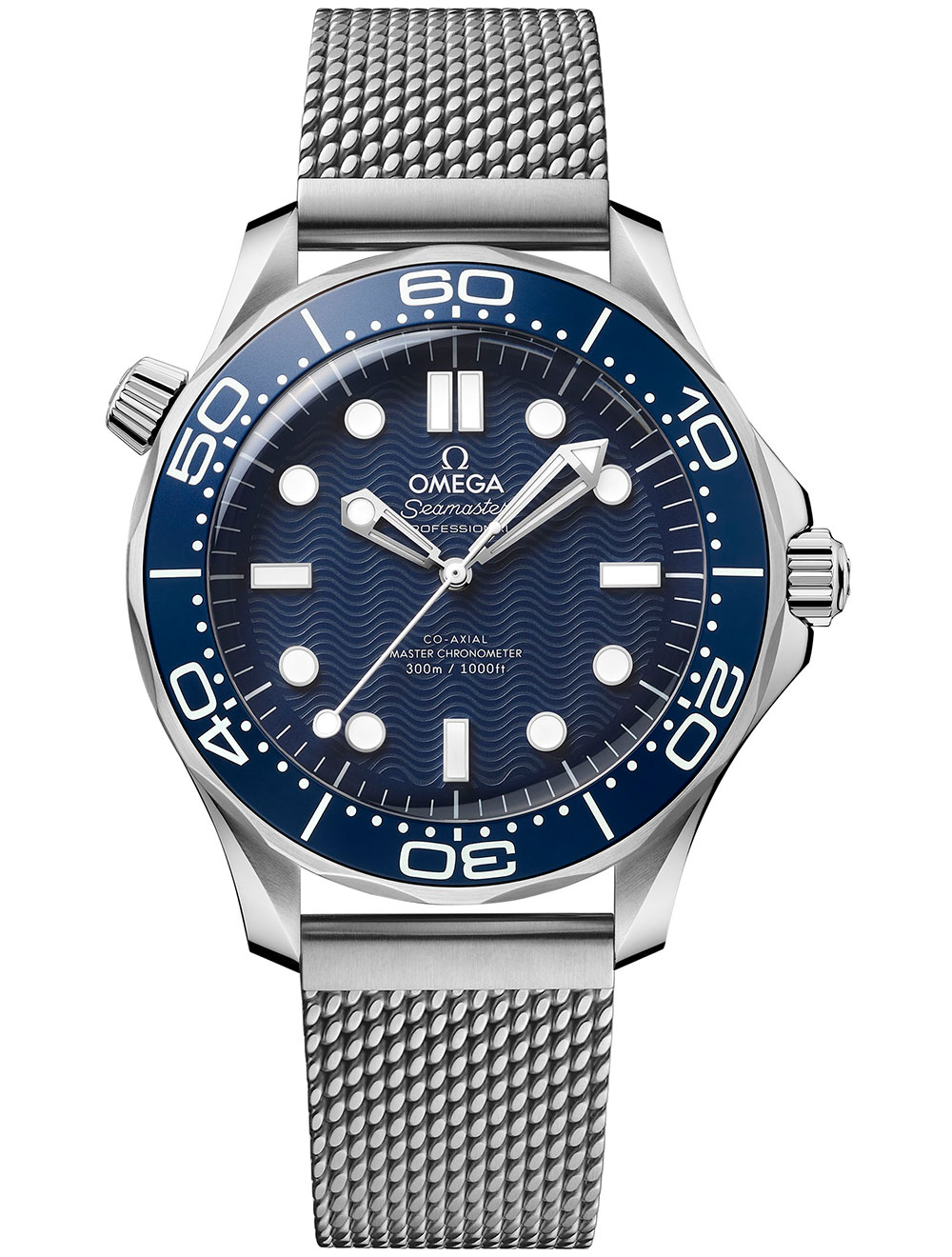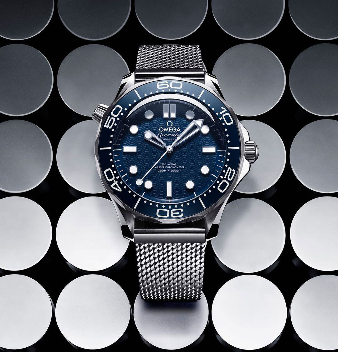 The 42mm Seamaster Diver 300M has a stainless steel case with blue dial with laser-engraved waves, inspired by the first-ever Omega watch that James Bond wore in the 1995 movie GoldenEye.