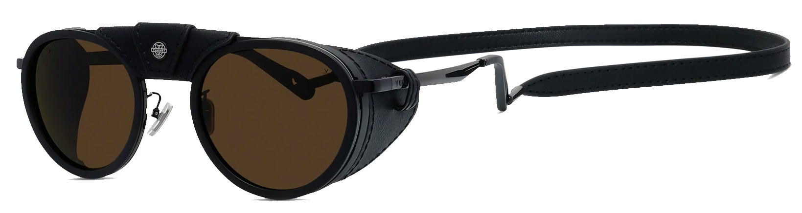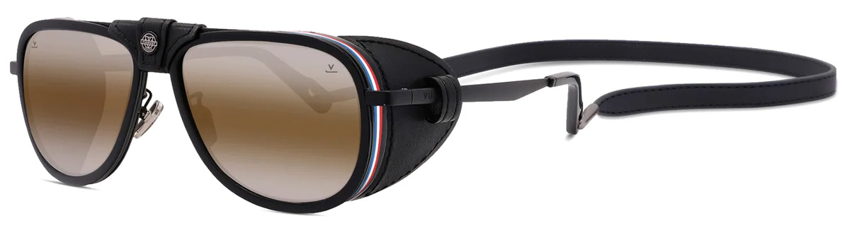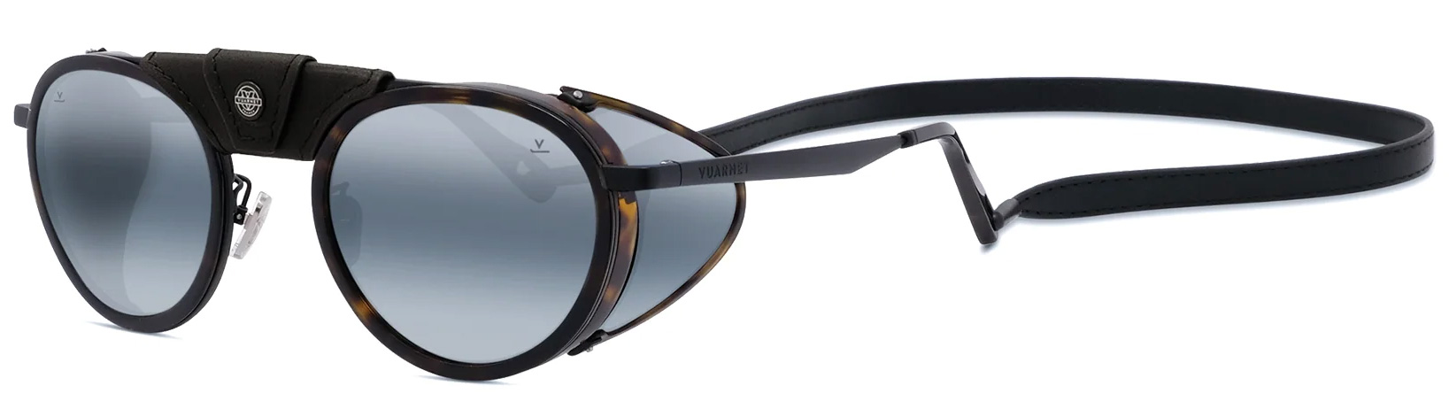 The Glacier is a modern version with a slightly different frame shape, and the removable side shields are made with natural leather and magnetic fixtures that attach to the temples.