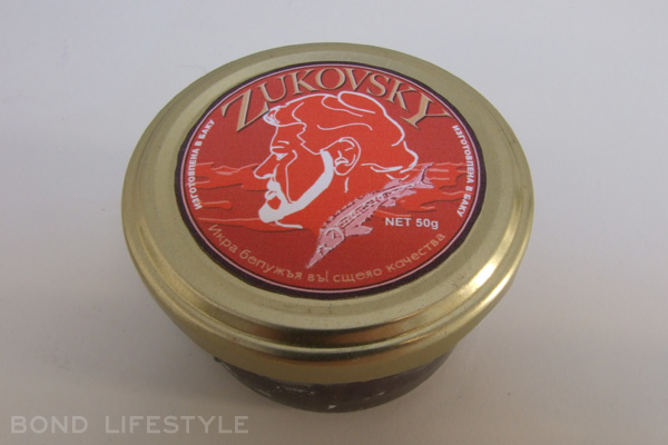 Carefully recreated by Bond Lifestyle, this high quality print label is a great addition to your prop showcase: the Zukovsky Caviar labels from The World is Not Enough. Find a simple glass jar with gold coloured lid, to complete the look.