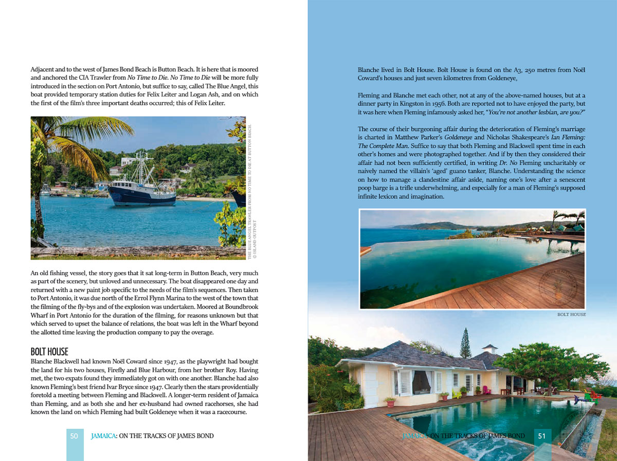 In his 5th book for ON THE TRACKS OF 007, Simon Firth takes you once again to an amazing James Bond destination. Exploring Jamaica from a traveller’s point of view, Simon takes you on a clockwise trip around the island, meticulously showing you where the Bond connection began, where all the action was filmed and where you definitely should go on the tracks of James Bond. Starting at Fleming’s beloved Goldeneye, you will visit Port Antonio, Kingston, Port Royal, Alligator Pond, Lucea, Negril, Montego Bay, Falmouth, Ocho Rios and see many fascinating places on the way.