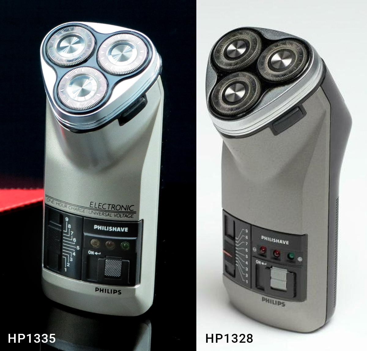 Also note that the HP1335 shaver is almost identical to the HP1328 model, but there are a few distinctive differences, which lead to the identification of the HP1328 model. In the film, we can just see the little "+" sign next to the green light, which only the HP1328 has.