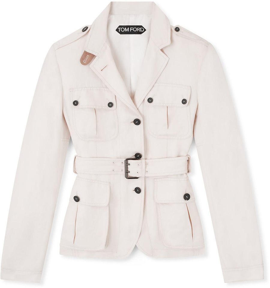 Nomi (Lashana Lynch) wears Tom Ford Linen Belted Field Jacket in Lily White Viscose.